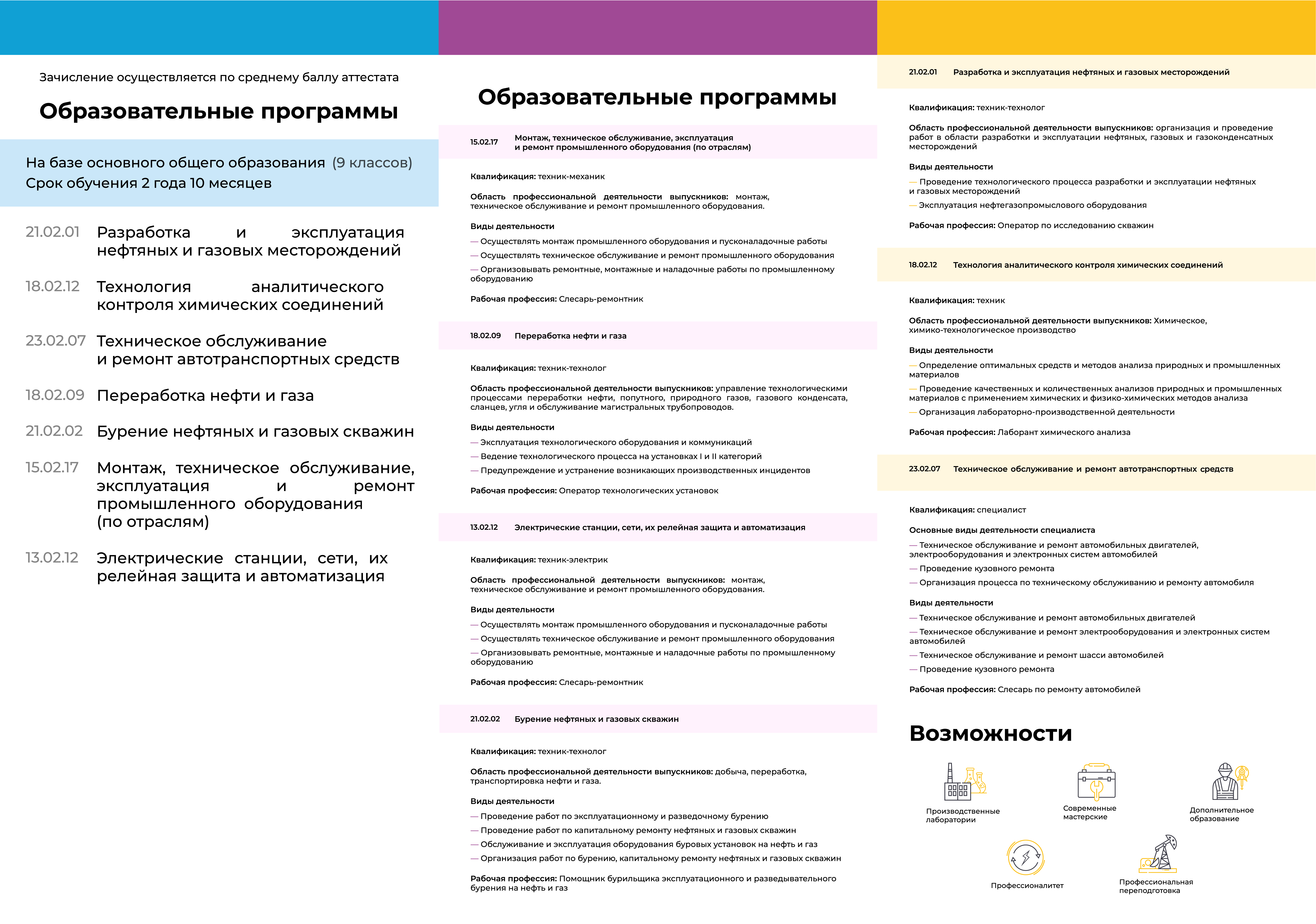 Прием по образовательным программам среднего профессионального образования проводится на первый курс по заявлению граждан.